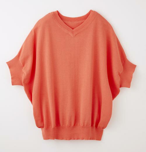 【ネコポスのみ】【大感謝価格】ユッタリドルマン5分袖ニットセーター コーラル M/L/LL
