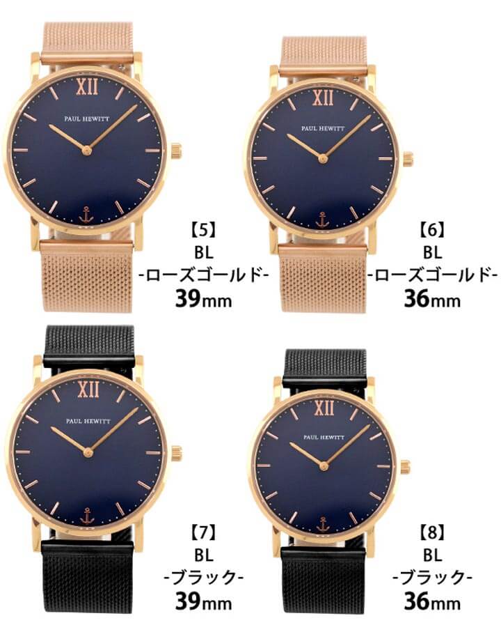 (1つの商品につきラッピングキットは1点です) ■ 機能 ■ ●駆動方式:クオーツ(電池) ●防水性能:5気圧防水 ●表示方式:アナログ表示 ■ サイズ・素材 ■ ●ケース:ステンレススチール ●バンド:メタル ●ガラス(風防):サファイアガラス ●ケースサイズ 【1】 【3】 【5】 【7】:39mm (縦×横×厚):約39×39×7mm 【2】 【4】 【6】 【8】:36mm (縦×横×厚):約36×36×7mm ■ 特徴 ■ 2009年に設立されたドイツ発のファッションブランドPAUL HEWITT(ポールヒューイット) 腕時計だけではなくおしゃれなアクセサリーなども幅広く展開。